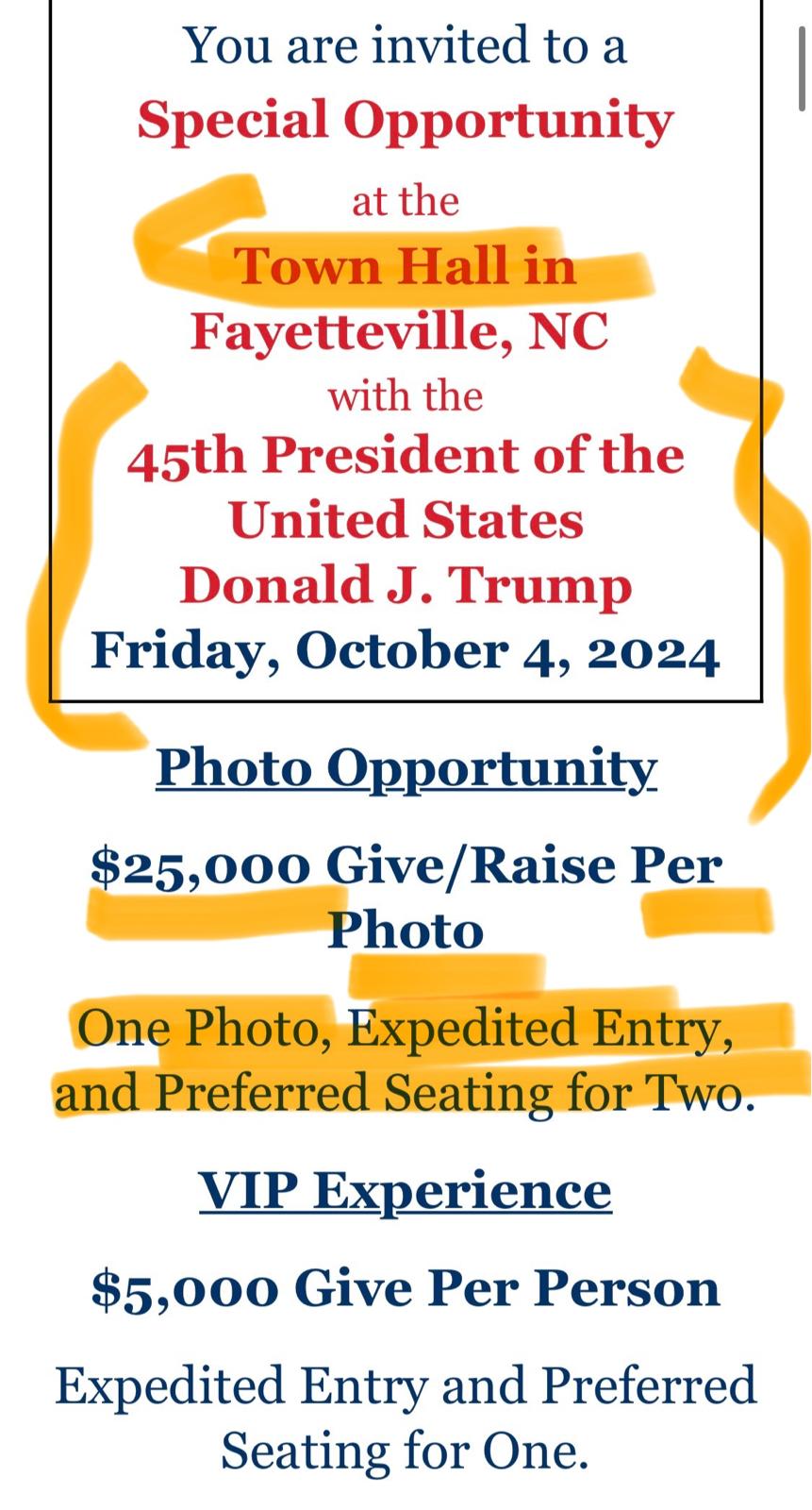 “BEHOLD – Feste e madhe ne fshat!! Kellici i ka bere prit Trumpit perpara se te dale ne mitingun e radhes dhe ka bere shpejt e shpejt disa foto, dhe i ka postuar pa mbaruar eventi. Pastaj e pershkruan takimin sikur Trump e njeh dhe jo vetem folen per interesin e Shqiperise, po madje dhe per Sali Berishen dhe disi Trump paska denuar rende arrestimin shtepiak te Berishes nga SPAK. Te dashur motra dhe vellezer, qe cdo gje qe fluturon, mendoni se hahet; Vazhdoj te marre te gjitha event e fushates se Trump se kam qene aq afer dhe mund te jem prape aq afer nese do te ma donte qejfi te angazhohesha…dhe si e tille po ju them qe: Dikush gjithnje paguan per keto foto. GJITHNJE. Vetem nese je pjese e fushates te bie rradha te besh foto pa para. Perpara cdo mitingu, behet nje seance me foto ku njerezit paguajne (po bashkangjis nje event qe behet neser ne NC), ku VIP + foto jane $25,000. Me poshte keni dhe listen e eventeve jo vetem te Trump, por gjithashtu JD Vance dhe RFK Jr, Vivek, Lara Trump, Don Jr. etj etj Keto jane evente private qe nuk publikohen. Vetem individ te caktuar nga fushata i marrin. Vetem mitingjet jane te hapura per publikun.” – shkruan Kokalari.