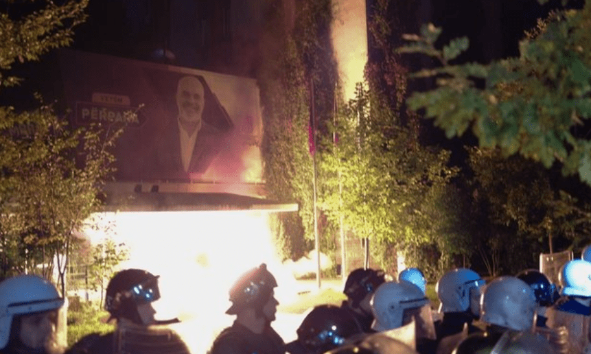 Protestuesit hodhën molotovë në drejtim të kryeministrisë.