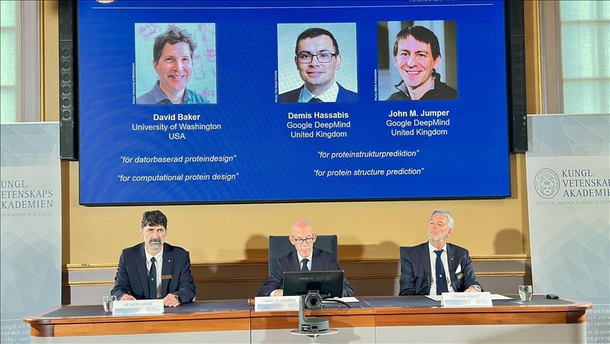 Çmimi Nobel në Kimi për vitin 2024 iu dha David Baker për punimet në fushën për “projektimin llogaritës të proteinave” dhe Demis Hassabis dhe John Jumper për punën e tyre në “parashikimin e strukturës së proteinave”, transmeton Anadolu.