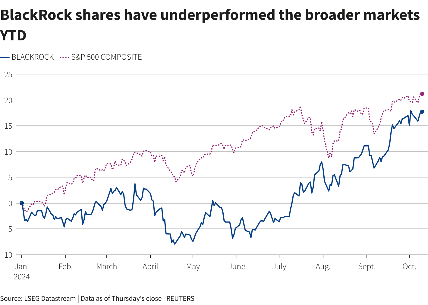 Aksionet e BlackRock u rritën me 1.9% në tregun e hapur të premten. Aksionet e saj janë rritur me rreth 18% në vitin 2024 që nga mbyllja e fundit, duke ndjekur kërcimin prej 21% të S&P 500.
