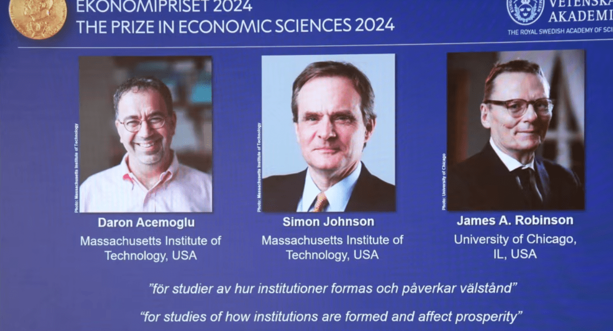 Ekonomistët Daron Acemoglu, Simon Johnson dhe James A. Robinson “kanë dëshmuar rëndësinë e institucioneve shoqërore për prosperitetin e një vendi”, tha të hënën komitetit i Nobelit i Akademisë Suedeze të Shkencave në një njoftim në Stokholm.