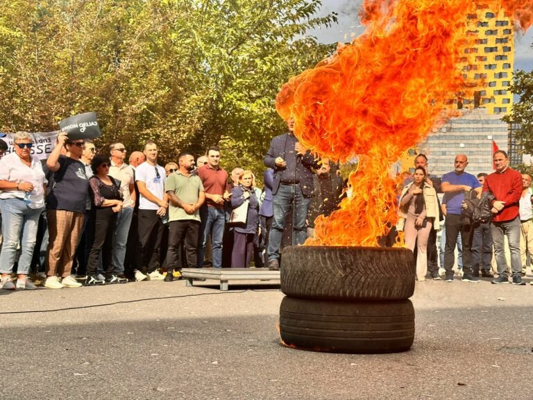 Në protestën e djeshme iu vu flaka disa gomave para se protesutesit të bashkoheshin me deputetët e PD-së në oborrin e Kuvendit.