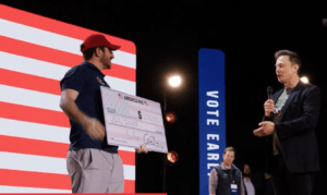 Musk, si njeriu më i pasur në botë, ka kontribuar mbi 75 milionë dollarë për super PAC-në e tij pro-Trump dhe shpreson që kjo lotari do të rrisë numrin e regjistrimeve mes votuesve që mbështesin Trump.