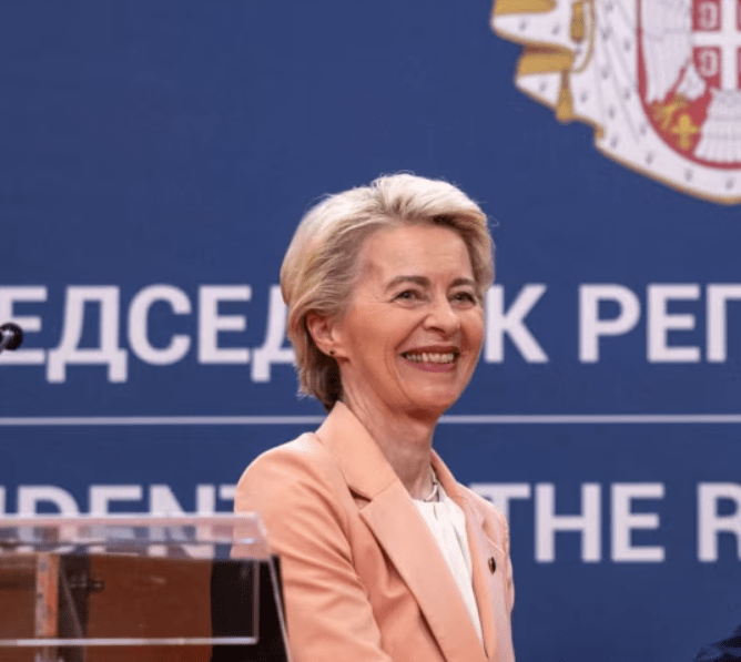 Më herët të premten, shefja e KE-së u takua me presidentin e Serbisë, me të cilin bisedoi për rrugën e Serbisë drejt integrimit në Bashkimin Evropian.