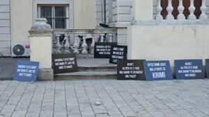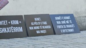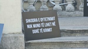 Protestuesit marshuan në heshtje nga Bashkia e Shkodrës, mbajtur pankarta që shpreheshin se “qytetërimi është më i fortë se krimi”.