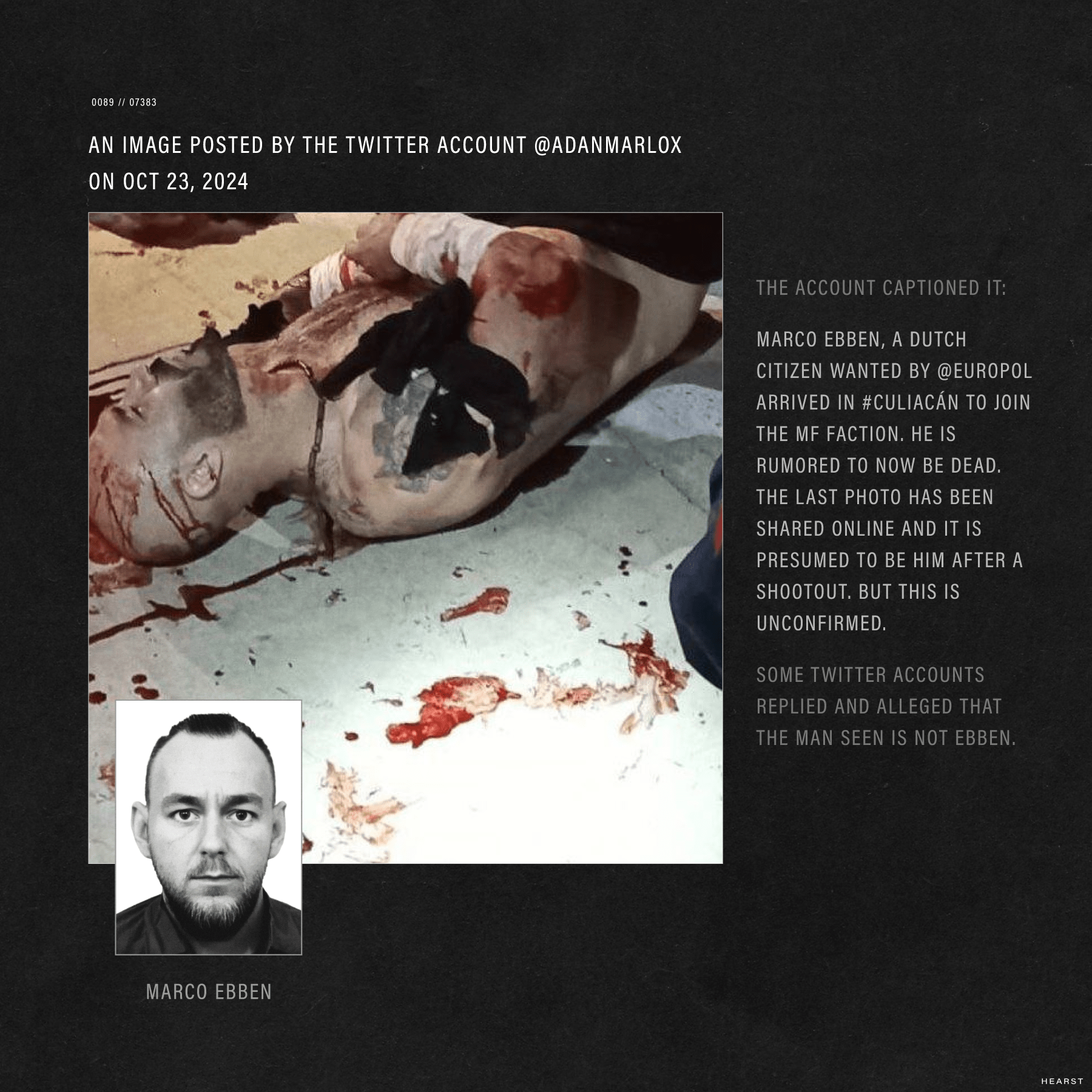 Marco Ebben, një nga njerëzit më të kërkuar në Holandë, thuhet se ishte bashkuar me kartelin Sinaloa në Meksikë pasi u arratis pas një atentati në fillim të këtij viti në Turqi. Vitet e fundit, Ebben kishte jetuar në Dubai, Spanjë, Rusi dhe Itali, si dhe në Turqi dhe së fundi, në Meksikë.
