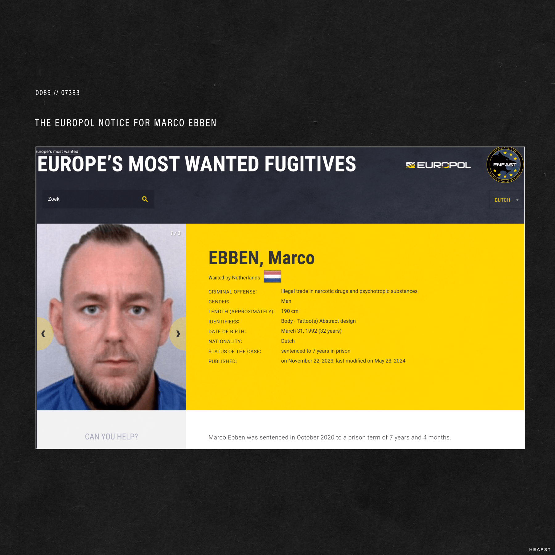 Marco Ebben u dënua me 7 vjet burg në vitin 2020 për përfshirjen e tij në trafikun e kokainës. Ai ka qenë dhe është ende në listën e të arratisurve më të kërkuar të Europolit vitin e kaluar.