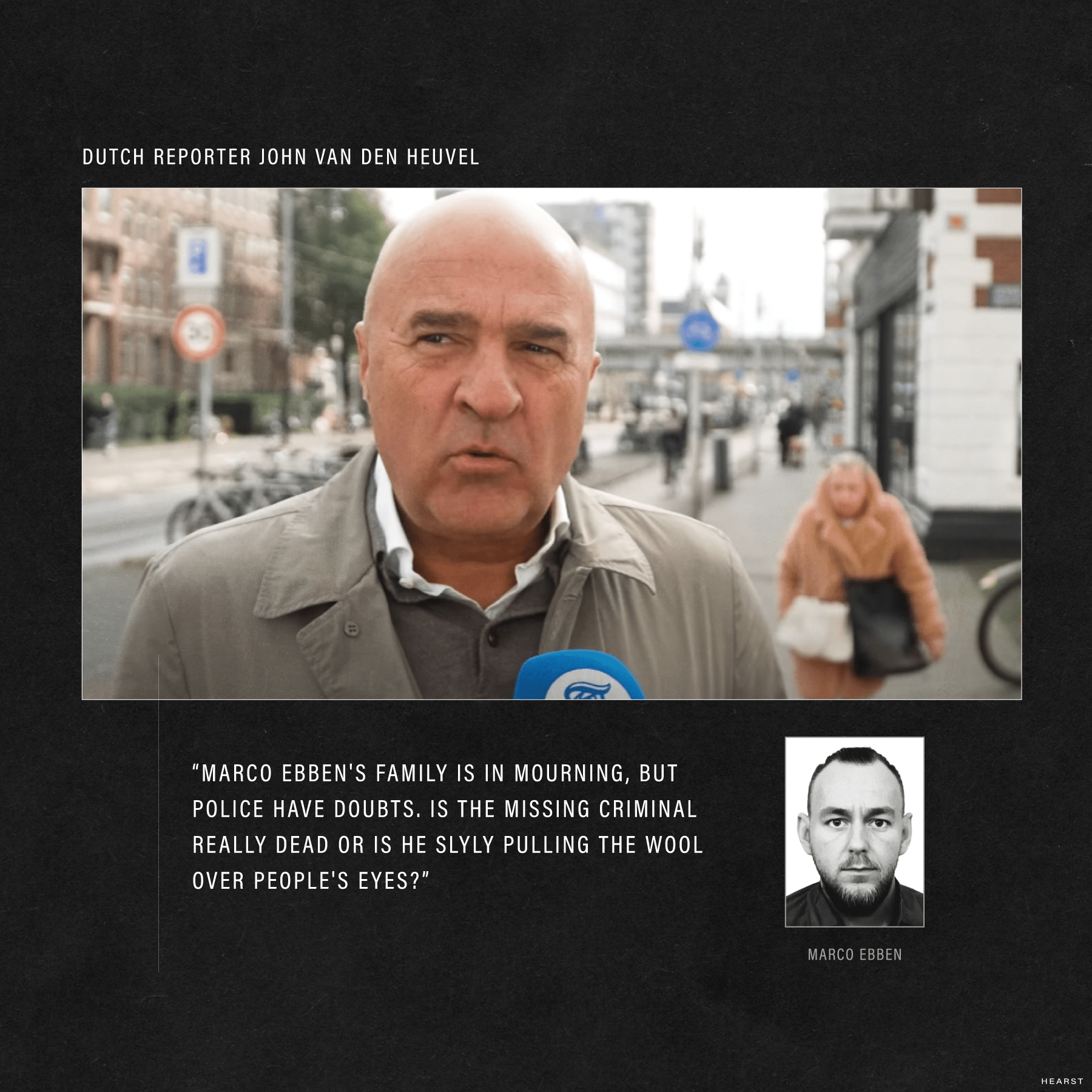 Sipas gazetarit John van Den Heuvel: “Familja e Marco Ebben është në zi, por policia ka dyshime. A është me të vërtetë i vdekur krimineli i zhdukur apo po i mashtron të gjithë sy më sy?”