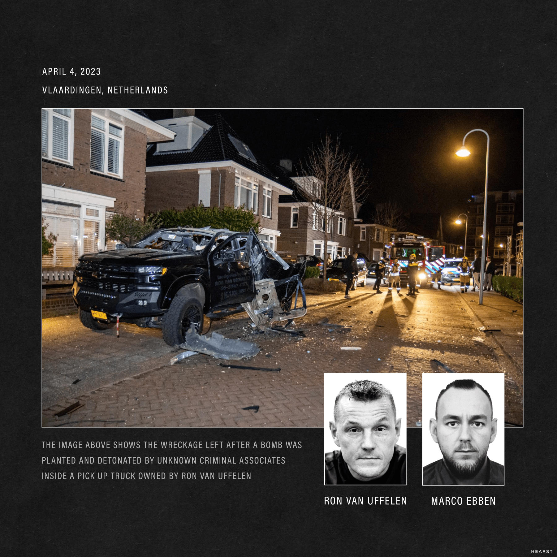 Hidrauliku holandez tashmë i ndjerë e identifikoi Marco Ebben si një nga të dyshuarit e mundshëm pas një serie sulmesh dhe bombash me zjarr që synonin atë dhe biznesin e tij. Sipas hidraulikut Ron van Uffelen, ai pati një debat të dhunshëm me Marco Ebben në një kafene në Vlaardingen disa vite më parë. Marco Ebben mohoi se e njihte atë.