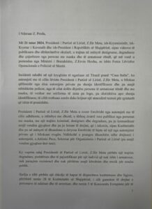 Nëse brenda datës 07.11.2024 nuk na përcillni emrat e personave, për të vijuar me përgjegjësinë personale të atyre personave që kanë dhënë urdhër dhe kanë ekzekutuar në mënyrë barbare një vendim gjyqësor në kundërshtim flagrant me Kushtetutën e Republikës së Shqipërisë dhe me parimet ndërkombëtare që mbrojnë të drejtat e njeriut, do të jeni Ju personi që do të mbajë përgjegjësi penale për konsumim të veprave penale “Shpërdorim detyre” dhe “Moskallëzmi i krimit” dhe për bashkëpunim në kryerjen e veprave penale.