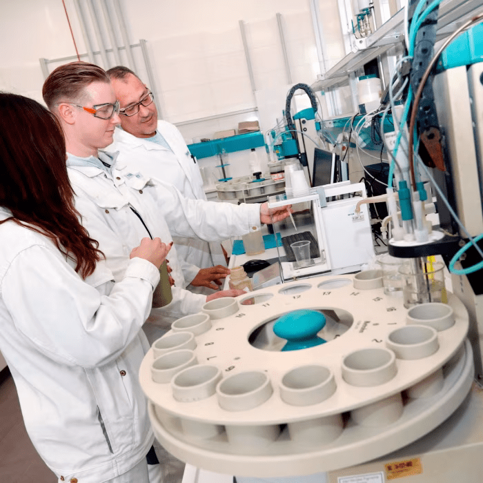 Brenda objektit, menaxheri Michael Vössing shpjegon se si forca e tij punëtore prej 280 personash e tret mineralin e titanit të zi në acid sulfurik të zier për të prodhuar dioksid titani, i përdorur për të zbardhur gjithçka, nga bojërat, plastika dhe pilulat tek tekstilet dhe pasta e dhëmbëve.