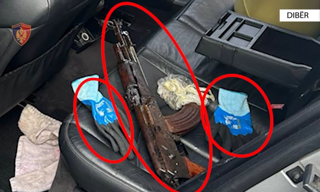 Gjatë kontrollit brenda në automjet, shërbimet e Policisë i gjetën dhe sekuestruan, në cilësinë e provës materiale, një armë zjarri kallashnikov me krëhër e municion luftarak, dhe një bidon me lëndë djegëse benzinë dhe një palë doreza.