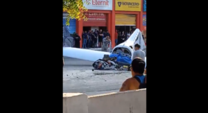 Një aeroplan i vogël është përplasur në një bulevard të ngarkuar në qytetin La Libertad në bregun perëndimor të Paqësorit të Ekuadorit, duke vrarë dy persona, thanë shërbimet e urgjencës dhe sigurisë.