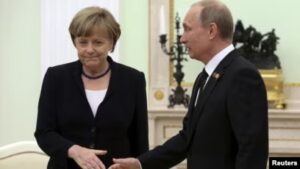 Kancelarja gjermane, Angela Merkel, i bëri thirrje presidentit rus, Vladimir Putin, të shfrytëzojë ndikimin e tij te separatistët në lindje të Ukrainës për të ndaluar dhunën atje.