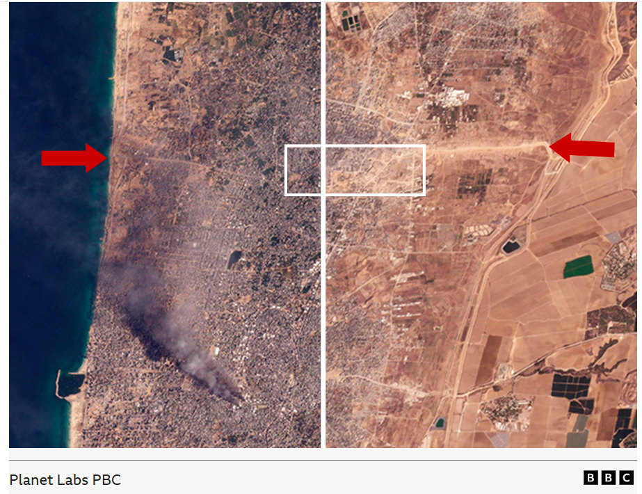 BBC ka dokumentuar më parë se si janë ndërtuar dy ndarje në Gaza që nga fillimi i luftës aktuale. Korridori Netzarim ndan një zonë në jug të qytetit të Gazës, ndërsa Korridori i Filadelfit i jep IDF-së kontrollin e tokës që kalon në gjatësinë e kufirit të Gazës me Egjiptin.