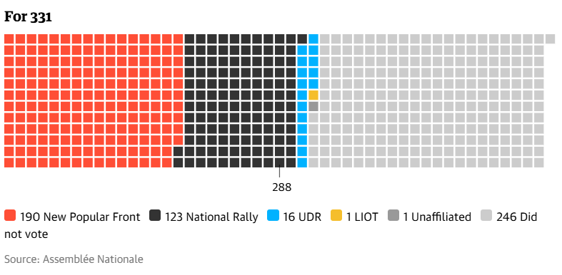 Rrëzimi u bë i mundur falë mbështetjes vendimtare të partisë së ekstremit të djathtë, National Rally, të udhëhequr nga Marine Le Pen.