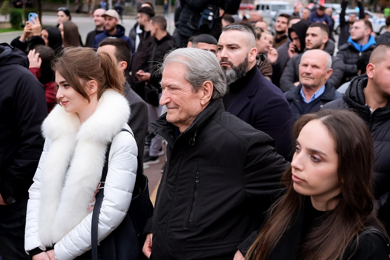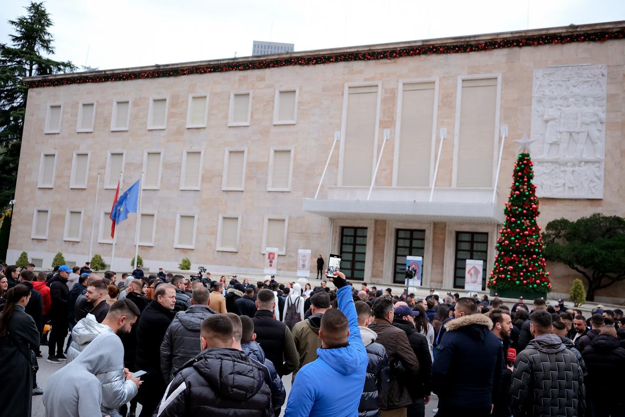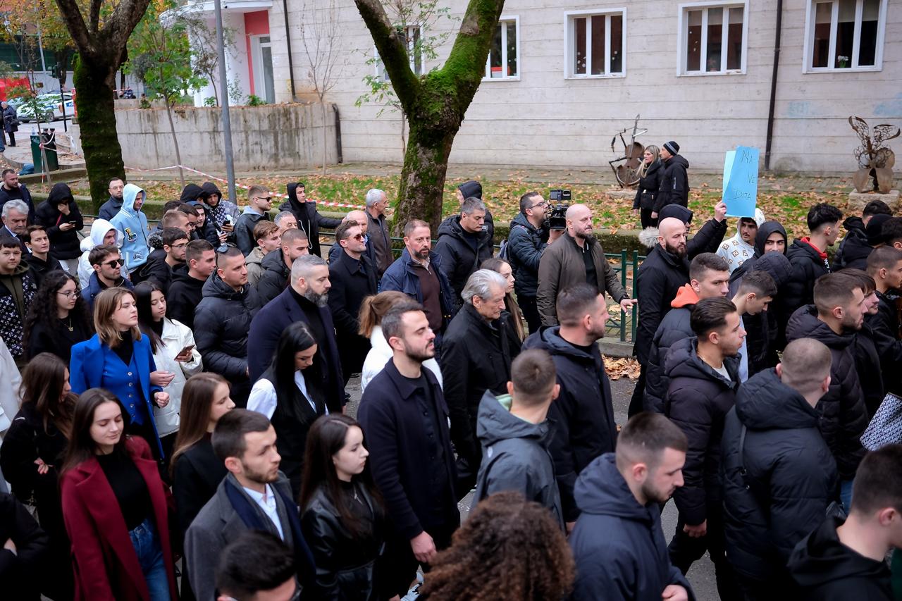 Ata u vendosën para godinës ku të rinjtë ë po mbajnë fjalime të rastit.