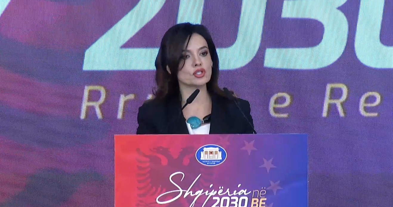 Në takimin “Shqipëria 2030 në BE”, kryeparlamentarja tha se anëtarësimi në BE do jetë një proces i bazuar në merita dhe se askush nuk pret dhurata nga Brukseli.