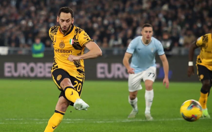 Në minutën e 41-të, Calhanoglu hapi serinë e golave nga pika e bardhë e penalltisë. Në të 45-tën, pas një Dimarco ndëshkoi portën laciale, me një goditje të bukur.