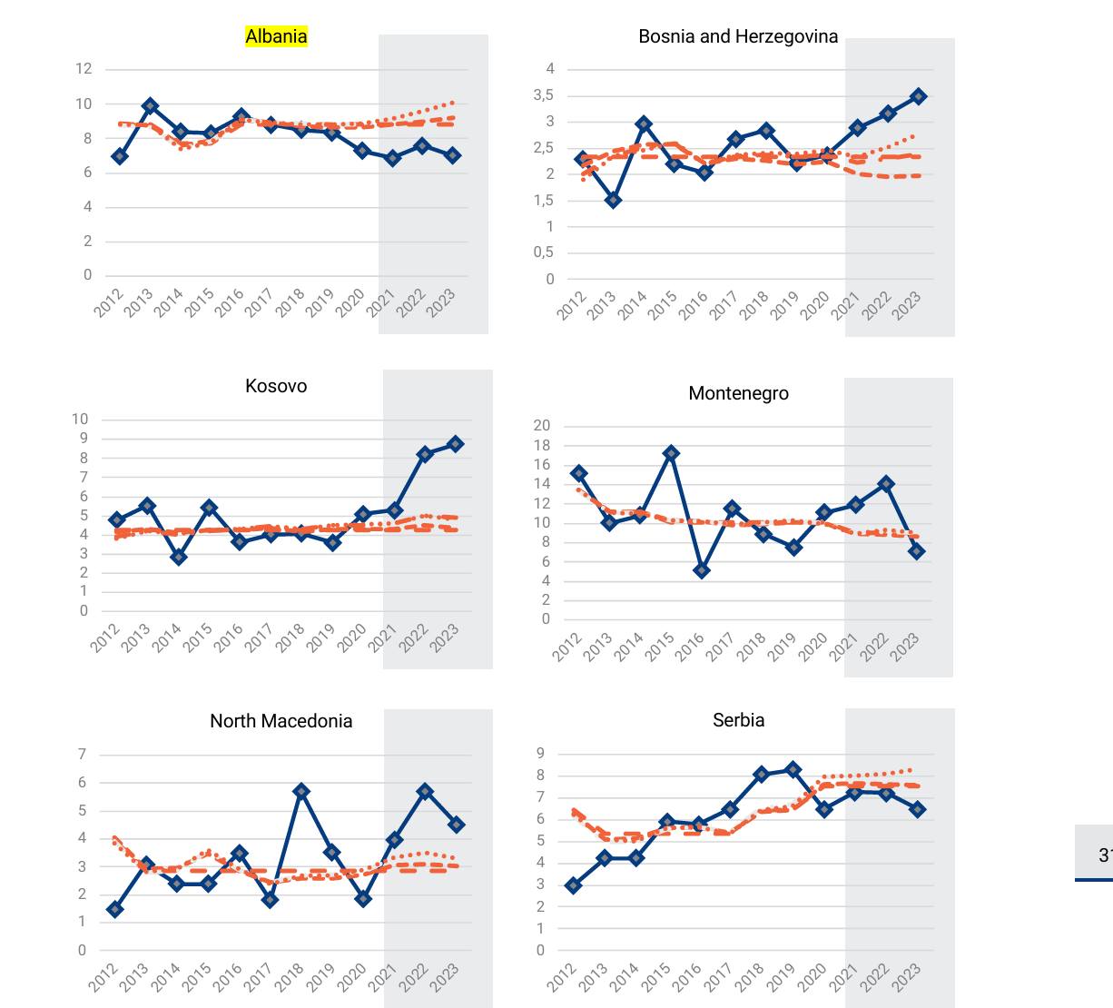 Së pari fluksi i investimeve të huaja nuk është më i lartë 10 vjeçarin e fundit, por nga 2020 deri në 2023 ka filluar të ulet dhe për më keq investimet e huaja direkte janë më të ulëta sesa parashikonin modelet ekometrike.