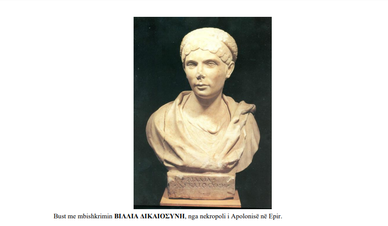 “Duke lënë gjithashtu pa koment edhe shkrimet e arkeologut dhe historianit shqiptar Skender Anamali, siç e shohim, për gruan e paraqitur në këtë bust, emri i saj është shkruar në dy gjuhë me alfabetin grek.