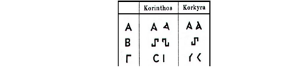 Përveç kësaj, këtu do të sqaroj se alfabeti dorik i Apolonisë, si dhe i qyteteve që konsiderohen si themelueset e saj, domethënë alfabetet e Korfuzit dhe Korintit, përveç shkronjës B, e cila shqiptohet b, kanë edhe shkronjën që, siç e shohim edhe në fragmentin e ardhshëm nga tabela e alfabeteve të lashta greke, është ekuivalenti i β grek ionik.