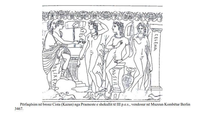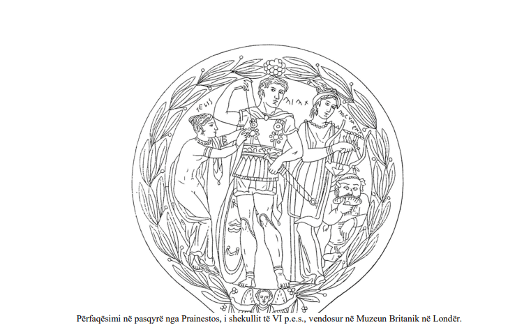 Përfaqësimi në kapakun e një tenxhereje bronzi të shekullit të III p.e.s. nga Praenesti. Muzeu Kombëtar