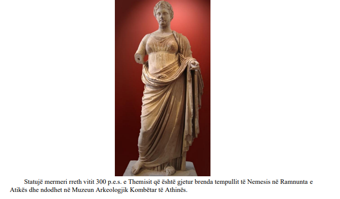 Për emrin grek , duke e ditur se perëndeshën e Drejtësisë grekët e quanin Themis, jap gjithashtu një foto të statujës së saj nga Ramnunda e lashtë e Attikës, ku mund te themi se në fytyrën e saj dhe në fytyrën e – ngjashmëritë janë të mëdha.