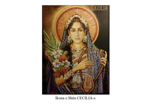 Si provë se Shën Caecilia është një huazim i të krishterëve nga kultet parakristiane, transferoj ikonën e mëposhtëme të saj, ku e kemi të paraqitur me një lyre të lashtë në duar, pastaj duke dhënë dy përfaqësime të tjera të lashta, madje edhe të shekullit të V p.e.s., nga ku mund të themi se nëse nuk kemi në të treja këto përfaqësime të njëjtën grua, se ikona e Shën CECILIA ose CAECILIA, si model i saj, ka këto përfaqësime para krishtërimit.