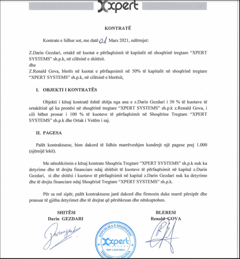 ‘Xpert systems shpk’ është njëra nga kompanitë aktive ku pronar zyrtar deri 1 Mars 2021 ka qenë njëri nga shtetasit aktualisht nën masën e ‘arrestit me burg’.