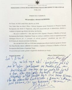 Në fletën e procesverbalit të paraqitjes së tij, Berisha ka shkruar se ky është një akt i turpshëm politike me të cilin prokuroria në kundërshtim me kushtetutën kërkon ndalimin e fjalës së tij të lirë.