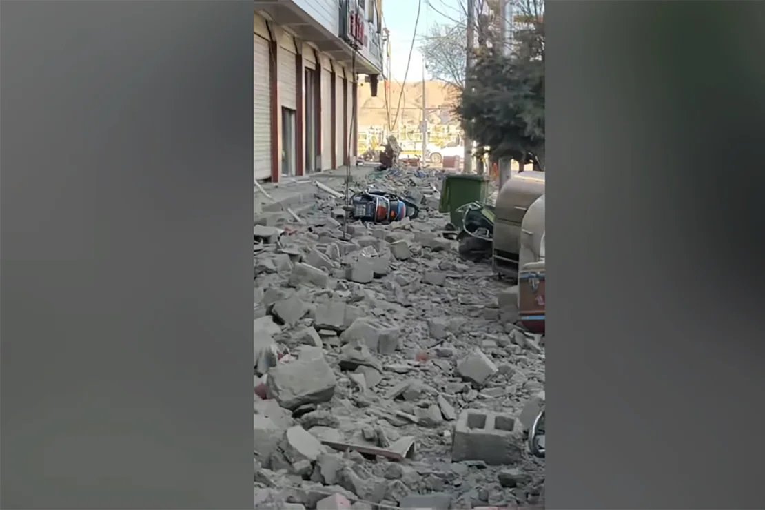 Videot e mediave sociale kineze treguan çati të dëmtuara dhe mbeturina të grumbulluara në rrugët e qarkut Lhatse, rreth 86 kilometra nga epiqendra.