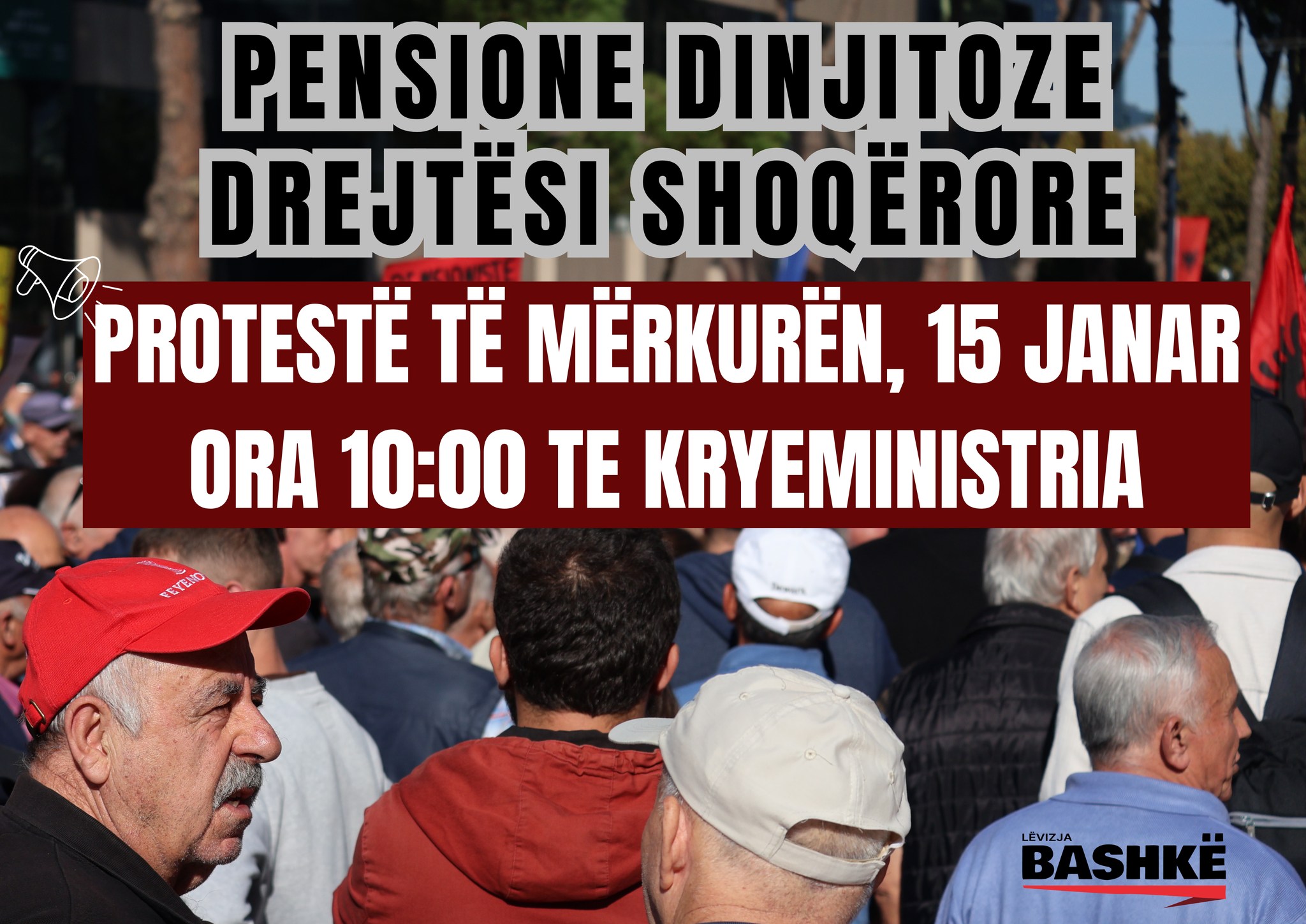 Lëvizja BASHKË dhe grupimi Pensionistët Bashkë ju ftojnë të mërkurën në orën 10:00 në protestë përpara kryeministrisë.