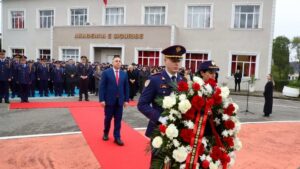 Kryepolici vendosi kurorë me lule në Memorialin kushtuar Dëshmorëve të Policisë, në Akademinë e Sigurisë.