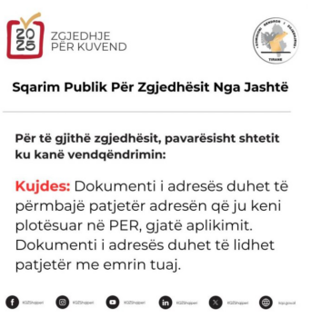 Gjithashtu shton KQZ, dokumenti i adresës duhet të lidhet patjetër me emrin e zgjedhësit të regjistruar.