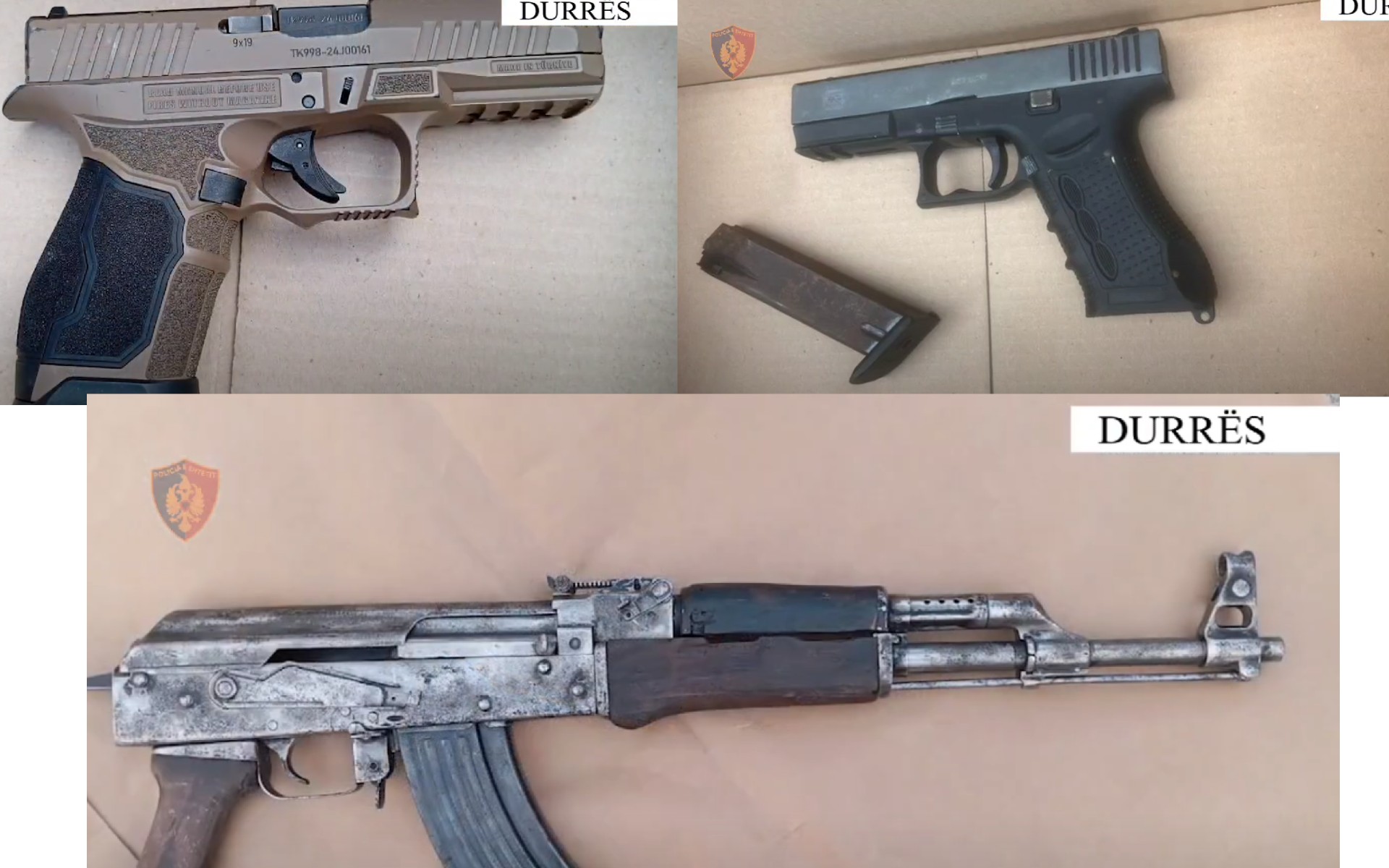 Nga kontrolli në automjetin e blinduar të 40-vjeçarit u gjeten 2 armë zjarri (kallashnikov dhe pistoletë). Më tej, nga kontrolli fizik ndaj këtij shtetasi, u konstatua se mbante dhe 1 radio të lidhur me kanalet e komunikimit të DVP Durrës.