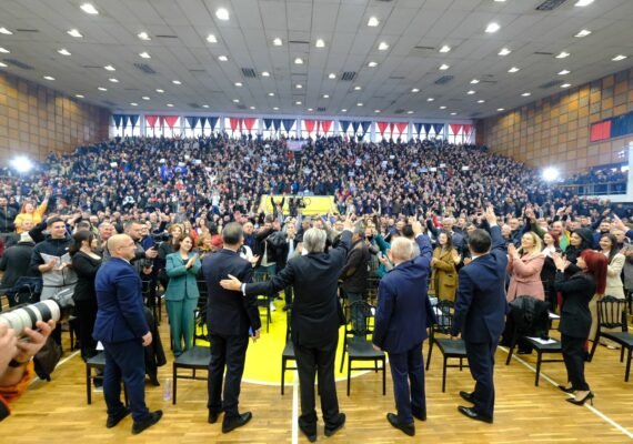 Në tubimin në Jagodinë morën pjesë mijëra mbështetës të partisë në pushtet, Partisë Progresive Serbe, dhe partnerëve të koalicionit.