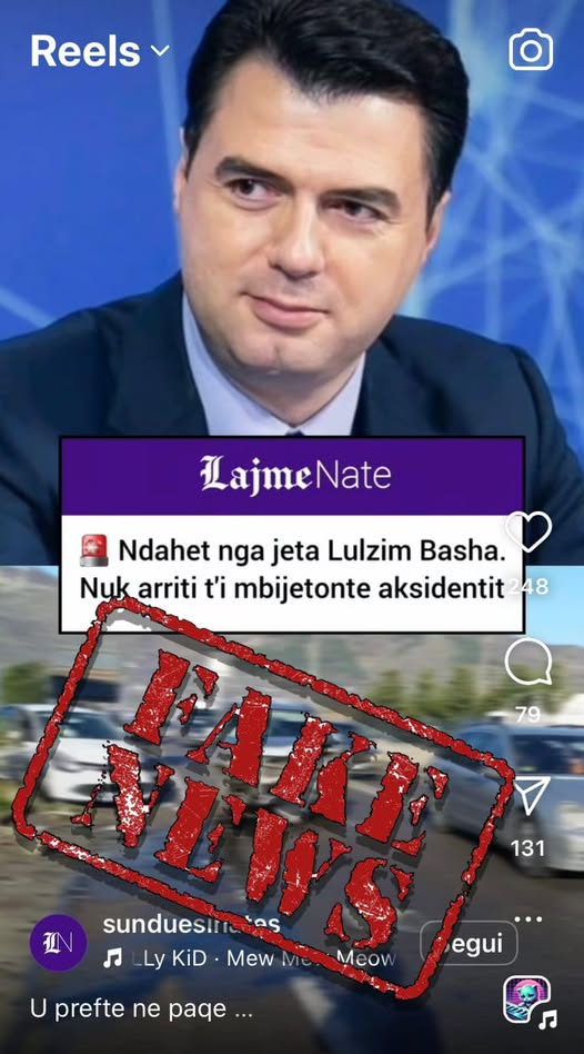 Kreu i Demokratëve Euroatlantikë Lulzim Basha ka shpërndarë titullin e një lajmi, ku thuhet se ai ka ndërruar jetë pas një aksidenti automobilistik.