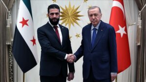 Presidenti turk, Rexhep Tajip Erdogan është takuar sot me presidentin e përkohshëm sirian Ahmed al-Sarrah në pallatin presidencial në Ankara.