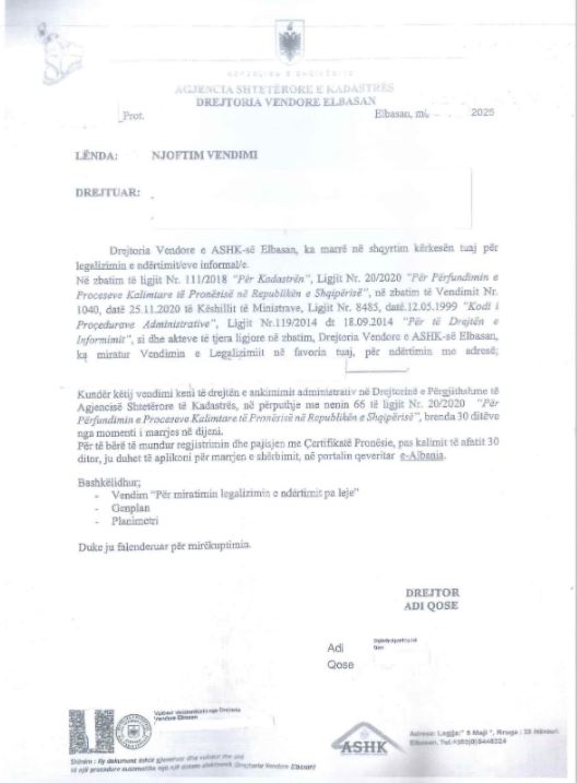 Qytetarët të cilët kërkojnë të aplikojnë u thonë se mjaftohen vetëm me këtë njoftim për të marrë tapitë e pronave të tyre, ndërkohë që ky njoftim duhet të jetë i shoqëruar me lejen fizike të legalizimit. Kërkojmë nga organet ligjzbatuese të verifikojnë numrin protokollit të njoftimit, kohën e njoftimit dhe kohën kur janë prodhuar dhe nënshkruar lejet e legalizimit për këto raste.