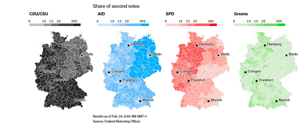Ndërsa blloku CDU/CSU i Merz fitoi 28.6% të votave, e vetmja mundësi centrist dypartiake për një shumicë në Bundestag është partneriteti me socialdemokratët e shpartalluar të kancelarit Olaf Scholz. Pavarësisht se u rendit e treta me 16.4% – rezultati më i keq që nga Lufta e Dytë Botërore – partia e qendrës së majtë ka një levë të madhe në dorë përpara negociatave të koalicionit.