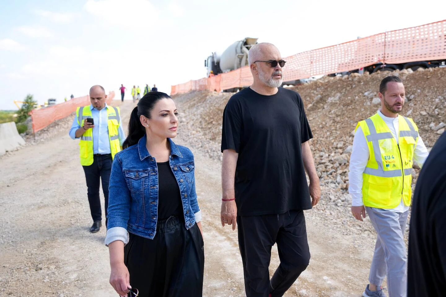 Kryeministri Edi Rama dhe Ministria e Infrastrukturës, Belinda Balluku gjatë një inspektimi në kantierin e aksit Thumanë-Kashar