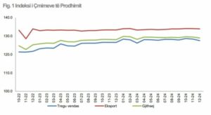 Sipas të dhënave të INSTAT, në tremujorin e katërt të vitit 2024, Indeksi i Çmimeve të Prodhimit arriti 129,4 kundrejt vitit 2021 si periudhë bazë.