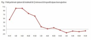 Sipas INSTAT, indeksi i Çmimeve të Importit, në tremujorin e katërt të vitit 2024 arriti 108,0, kundrejt vitit 2021 si periudha bazë. Krahasuar me tremujorin e katërt 2023, indeksi i çmimeve të importit shënoi një ulje me 0,9%, një vit më parë ky ndryshim ishte me ulje 0,5%. Ndryshimi tremujor i indeksit të çmimeve të importit në tremujorin e katërt 2024, krahasuar me tremujorin e tretë 2024 ka një rritje te lehtë prej 0,01%.