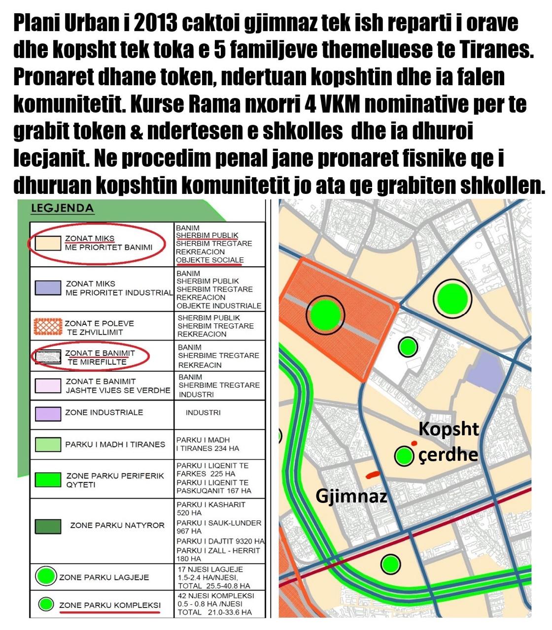 2.4. Pretendimi se Berisha ndryshoi destinacionit doli i rremë.Në kundërshtim me pretendimet e padisë, dokumentet zyrtare publike vërtetojnë se destinacioni i tokës, nga sportive në urbane, është kryer nga Edi Rama, me anë të tre vendimeve, të marra në cilësinë e tij si kryetar i Bashkisë së Tiranës qoftë në 2004 (17,000 m2), 2006 (7,000 m2) dhe e gjithë zona ne 2008 duke e shpallur “Zhvillime të reja me parametra të larta urbane”, pa asnjë kërkesë nga pronarët e tokaës. Megjithatë, Edi Rama nuk është marrë kurrë në pyetje nga SPAK për këtë çështje. Si Kryeministër, zoti Berisha nuk kishte kompetencë ligjore të propozonte apo të ndërhynte në vendimet e pushtetit vendor për planifikimin urban, pasi qysh me nderhyrjen tek Zogu i Zi, me 16.01.2006 Edi Rama solli Presidentin e Autoriteteteve Rajonale dhe Vendore te Keshillit te Evropes (di Stassi) i cili deklaroi se planifikimi dhe kontrolli i territorit jane tager I pushtetit vendor sipas Kartes Evropiane te Qeverisjes Vendore te Keshillit te Evropes. Ndaj ne 2006 nuk ka asnje vendim te KRTRSH ne kundershtim te 12 ndryshimeve te destinacioneve qe vendosi Edi Rama. Lejet e ndërtimit për zhvillimet e zonës u miratuan gjithashtu përkatësisht nga Edi Rama (2007-2008), si edhe kryebashkiakët e tjerë të Tiranës. Prona u zhvillua nga tre nga trashëgimtarët e pronarëve të tokave, në përputhje të plotë me kuadrin ligjor përkatës.