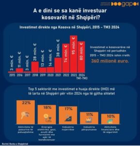 Instituti GAP ka publikuar një grafikë ku paraqiten investimet e shtetasve të Kosovës në Shqipëri.