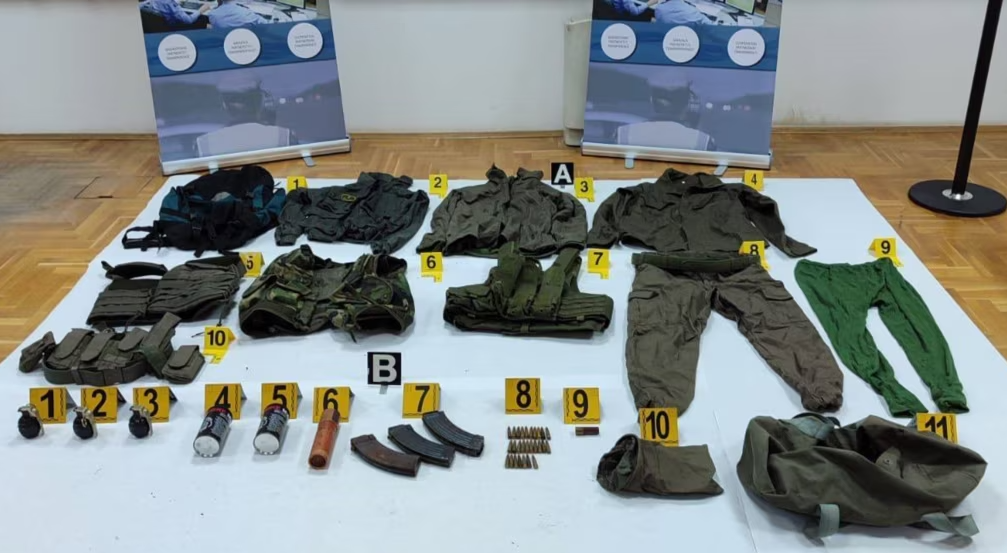Policia tha se ka konfiskuar uniforma ushtarake, tre gjoksore për mbajtje te armatimit, tre granata dore, tre karikatorë të zbrazët të armës së gjatë, dy shokë bomba, një bombë ndriçuese dhe 28 fishekë të armës së gjatë.