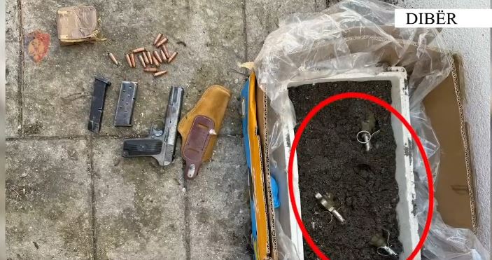 Gjatë kontrollit në banesën e tij, shërbimet e Policisë kanë gjetur 1 armë zjarri pistoletë, 3 granata dore të montuara me kapsolla ndezëse, 1 krehër pistolete dhe një sasi municioni luftarak, të cilat u sekuestruan në cilësinë e provës materiale.