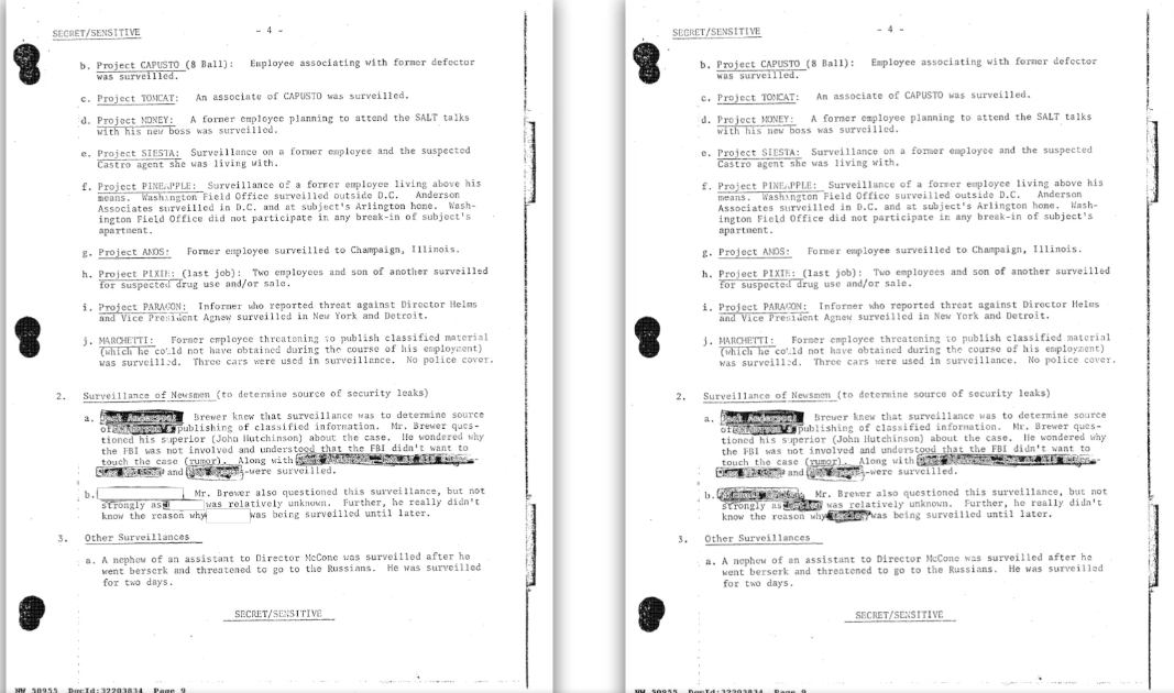 Kjo memo e saporedaktuar zbulon se CIA vëzhgoi reporterin e Washington Post, Michael Getler, i cili iu bashkua The Post në 1970 dhe vdiq në 2018. Kur ky dokument u publikua më parë, ai kishte hequr tashmë emrat e reporterëve të tjerë nën “Vëzhgimi i Newsmen”, gjë që tha se CIA e bëri për të “përcaktuar burimin e sigurisë”. Referencat për mbikëqyrjen e CIA-s të një gazetari të Washington Post, i cili duket të jetë Getler, përfshihen në të paktën dy dokumente të tjera të saporedaktuara.