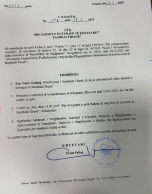 “DELEGIMIT E DETYRAVE TË KRYETARIT” BASHKIA TIRANË”